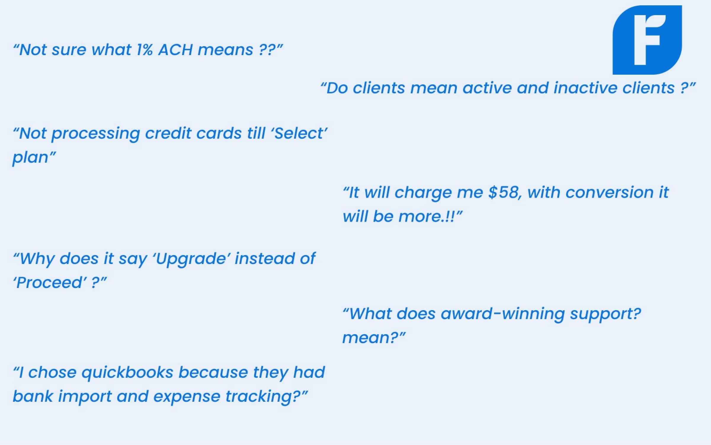 Internal jargon like "1% ACH" meant nothing to a social media consultant just trying to invoice their client.