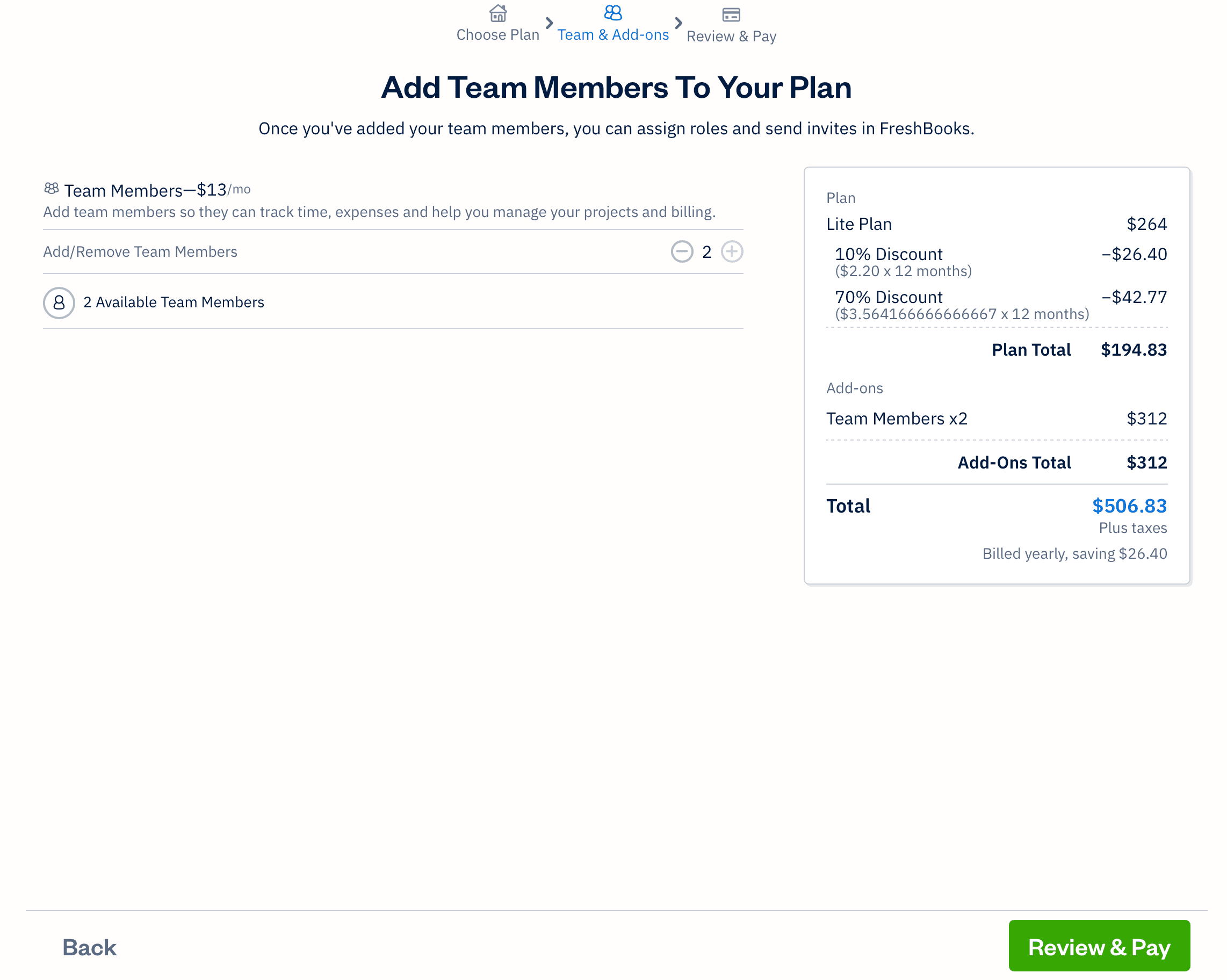 Live updating total cost calculator as users add team members