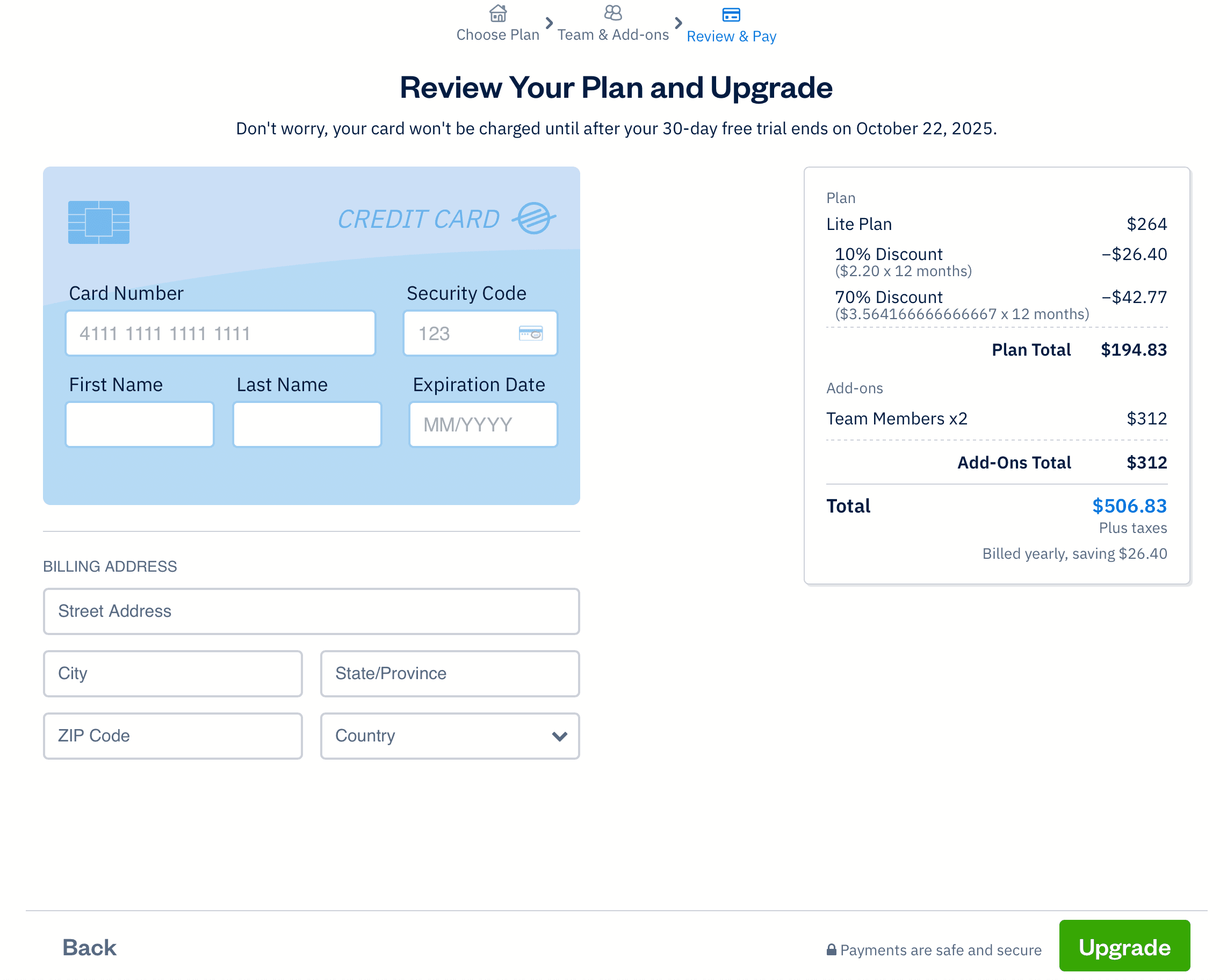 Reassurance about trial period and billing details