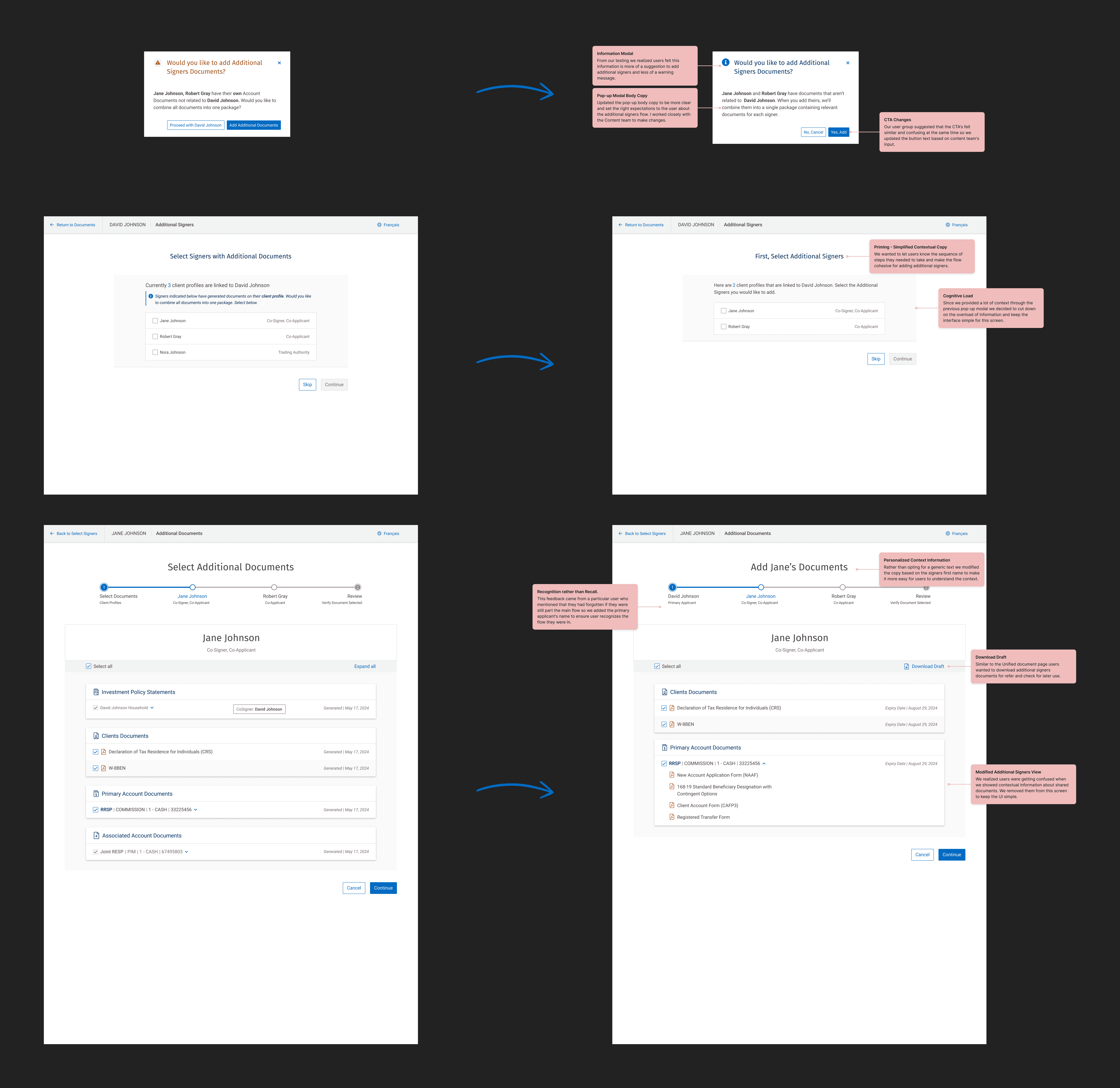 Design Rationale: The process for adding beneficiaries and co-signers is integrated into the main flow via a clear modal, maintaining task continuity. Microcopy and CTA language were refined post testing to eliminate ambiguity.
