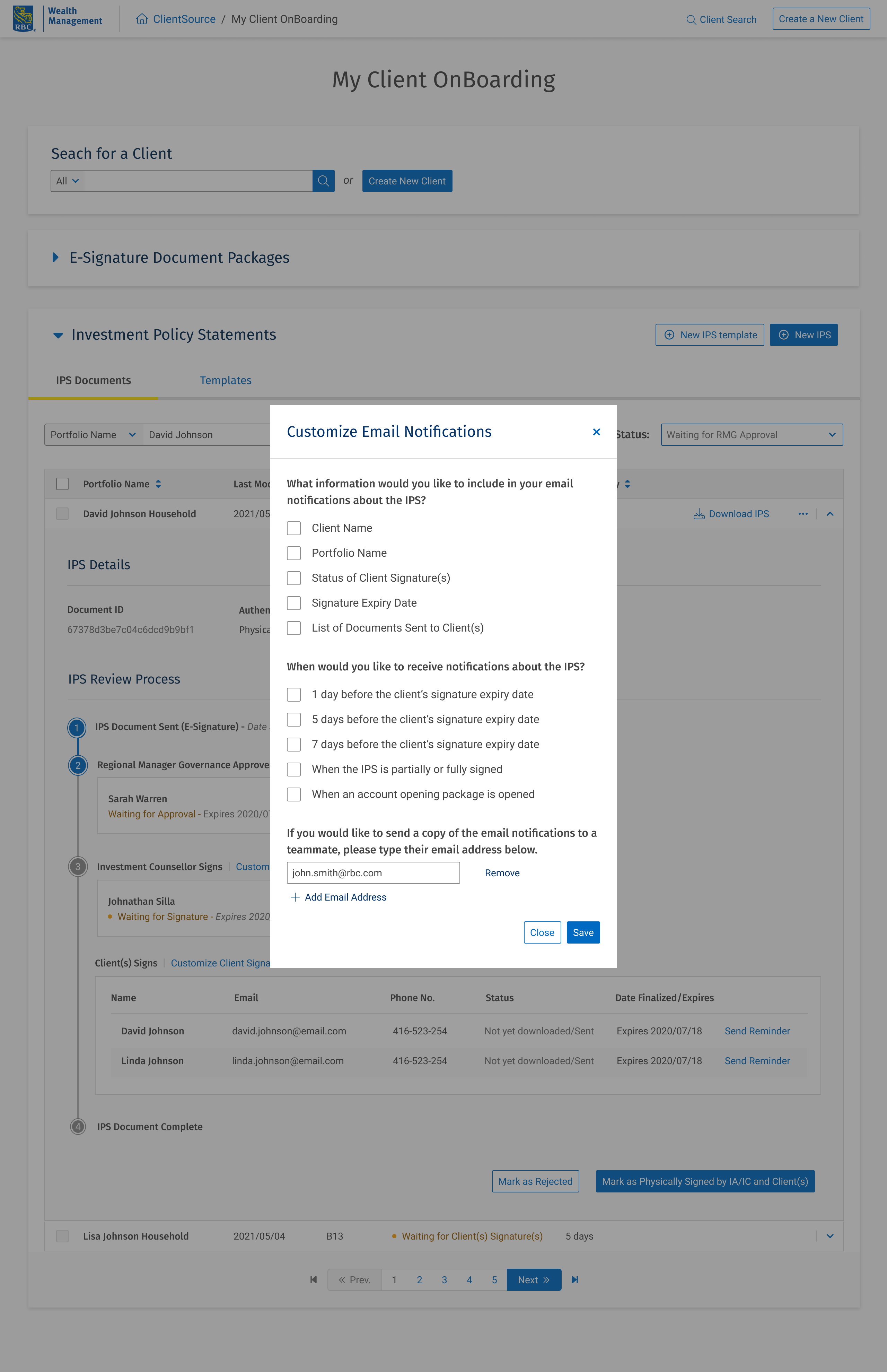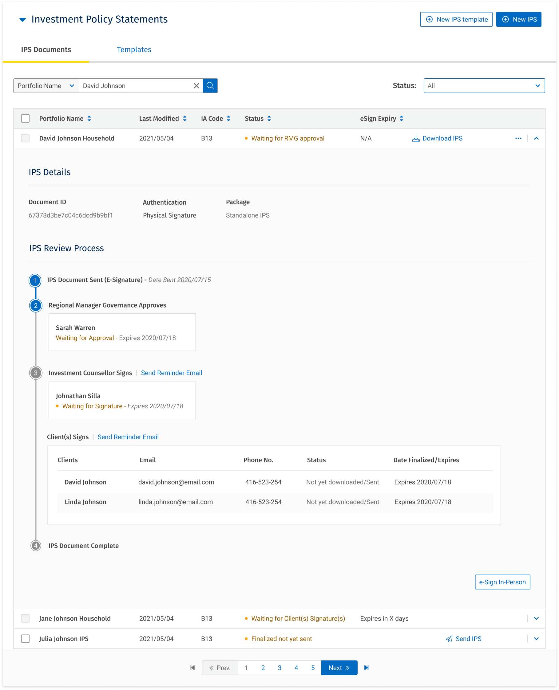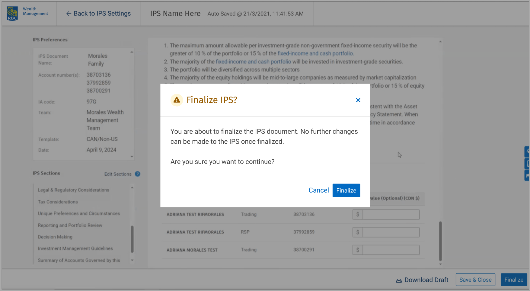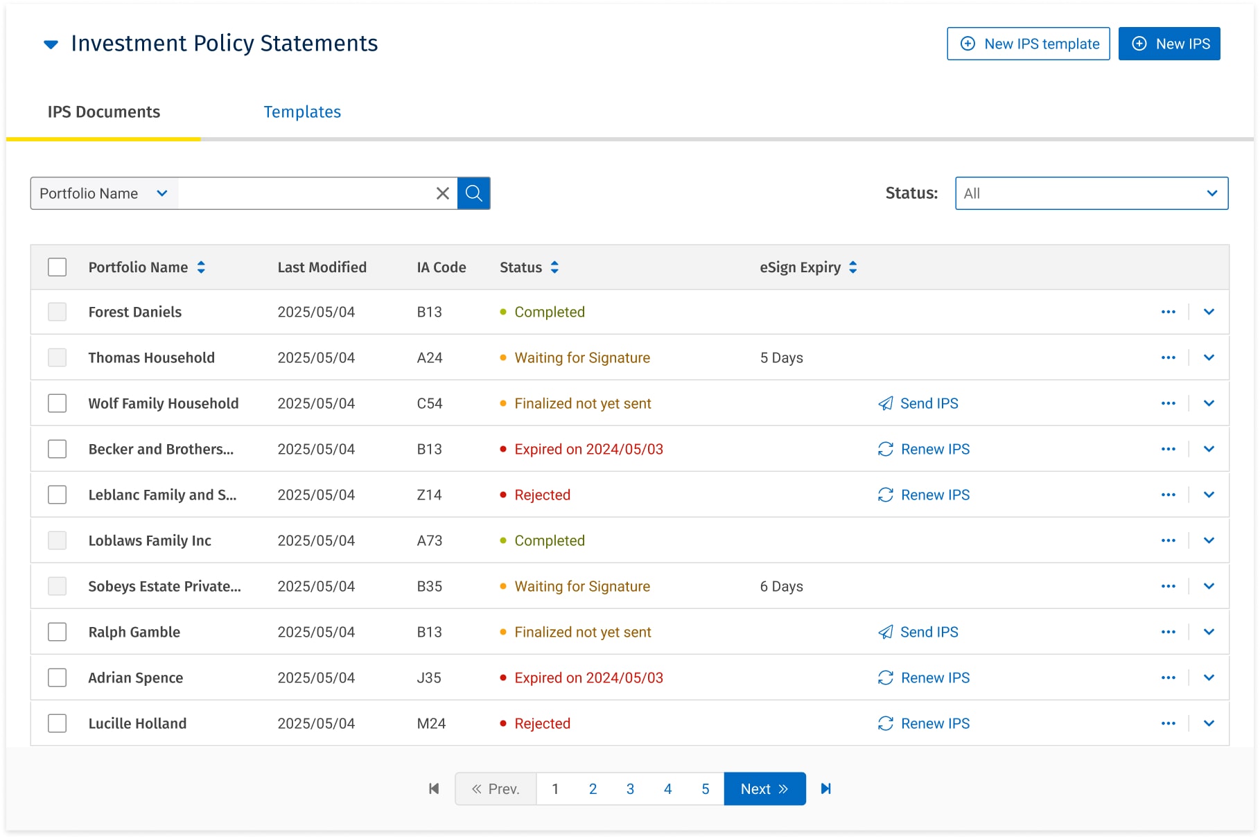 I spearheaded the design for a new, more flexible IPS architecture that decoupled key actions to grant advisors necessary control.